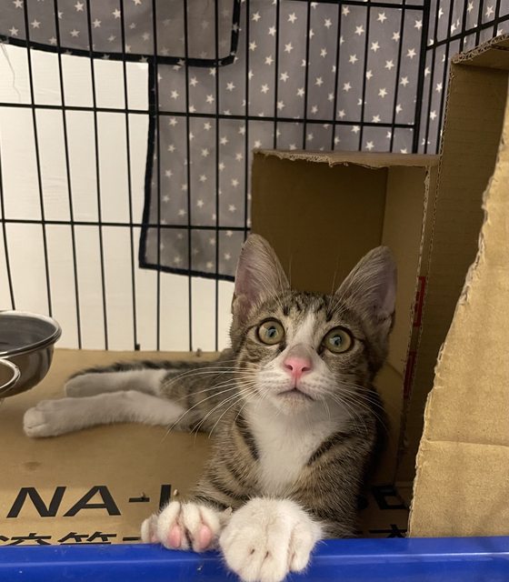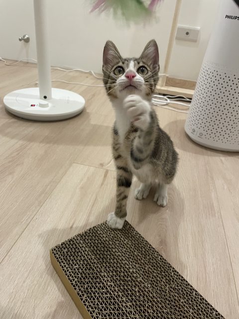 貓咪名字:目前叫他喵喵,名子留給未來的爸爸媽媽取
