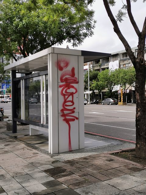 公車站塗這樣能看嗎? 好像欠債被人潑漆似的....