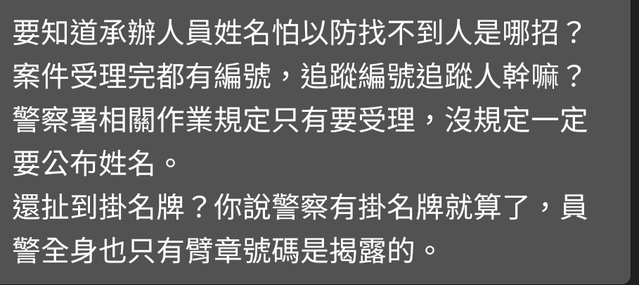 推 ringring : 報案想知道承辦人全名不是很基本的嗎? 06/14 01:11