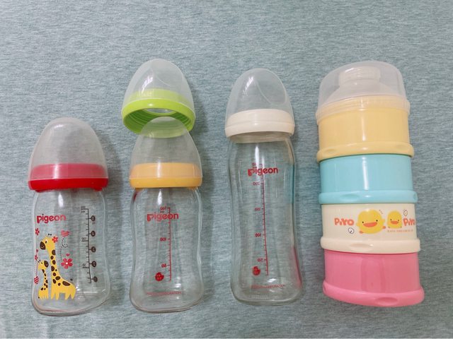 1. 貝親寬口徑玻璃奶瓶組(無附奶嘴頭)