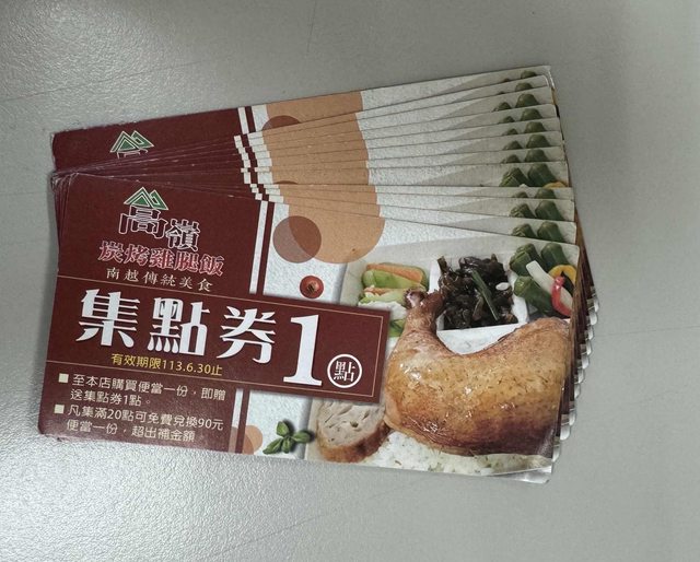 物品名稱:高嶺碳烤雞腿飯集點券*12張