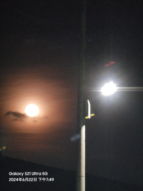 推 eppsiva : 今天的月亮是今年最靠近地球的時刻,而且偏粉紅色, 06/22 20:20