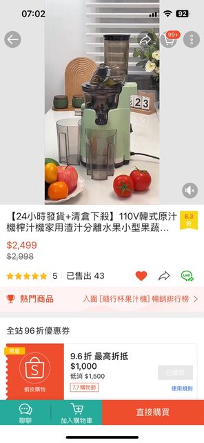 欲換物品:如圖的慢磨機,若有少用近新也可但以以下品牌優先(可直接寄到我指定地點