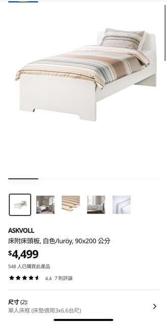 物品名稱:IKEA ASKVOLL 床附床頭板, 白色/luroy, 90x200 公分