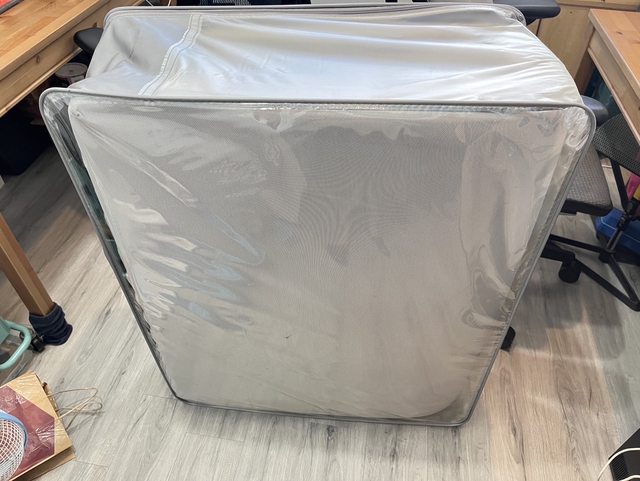 折疊床墊本來是買來臨時給來家裡的客人睡覺用,使用次數約10次,床墊厚度10公分為記憶床墊,外袋有裂,有用膠帶黏,介意勿取