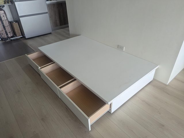 物品名稱:單人床之木製床架,含3個收納抽屜