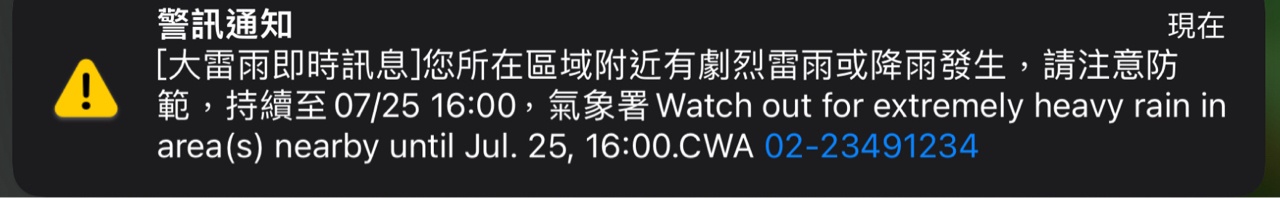 推 xoshinexo : 警訊說持續到16:00 07/25 12:00