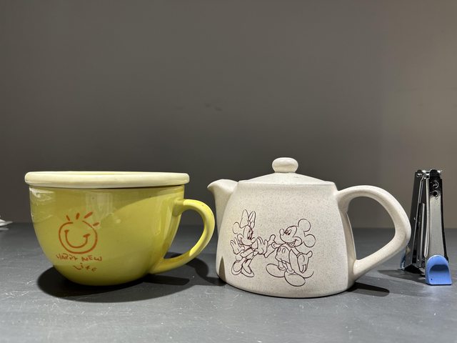9:附蓋湯陶瓷碗、米奇米妮泡茶壺/皆洽中