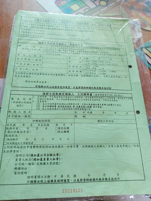 標題[贈送] 乙級技術士技能檢定報名表