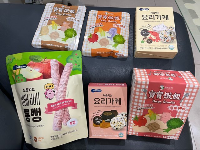 貝棒-蘋果口味,效期至2024.12.10。4. BEBECOOK初食拌飯香鬆6小包,效期至2024.10.1