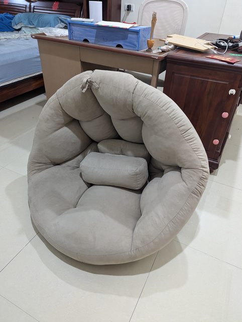 物品狀況:二手,購入已五年左右,需要者可自行拆洗,拉鍊拉開會變成一片平的圓墊。