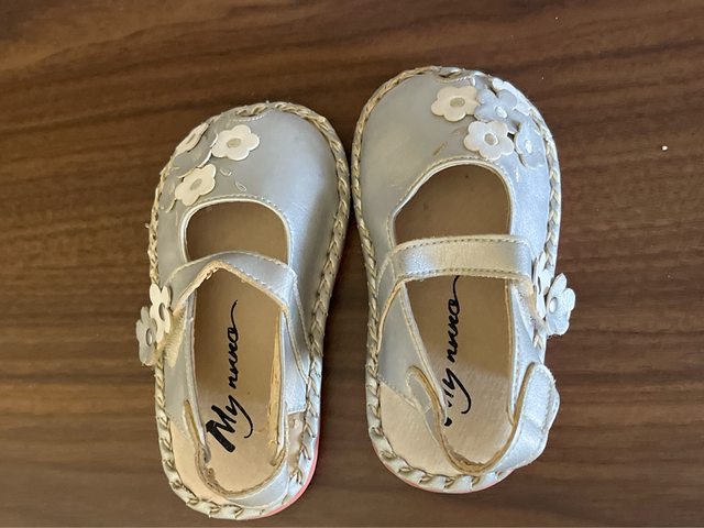 3.銀灰色小花涼鞋,14號。