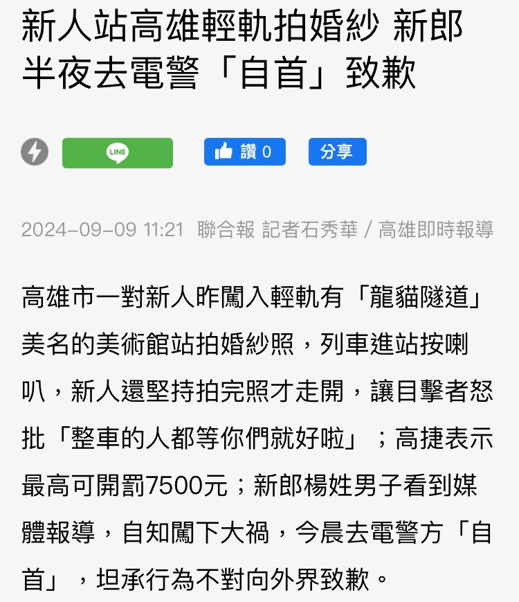 → wang56 : 樓上,是要罰攝影師吧,違規地點攝影師可以拒絕拍 09/09 11:28