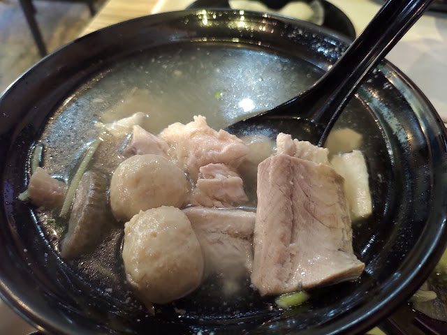 綜合魚湯:料多多,有虱目魚丸,魚片,魚肉(魚無刺,可以放心吃)