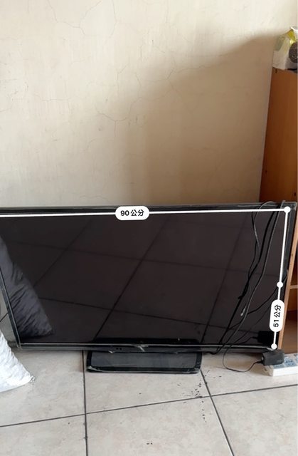 電視螢幕是最大的,我一時找不到量尺,故用手機內建程式量長寬(如圖)