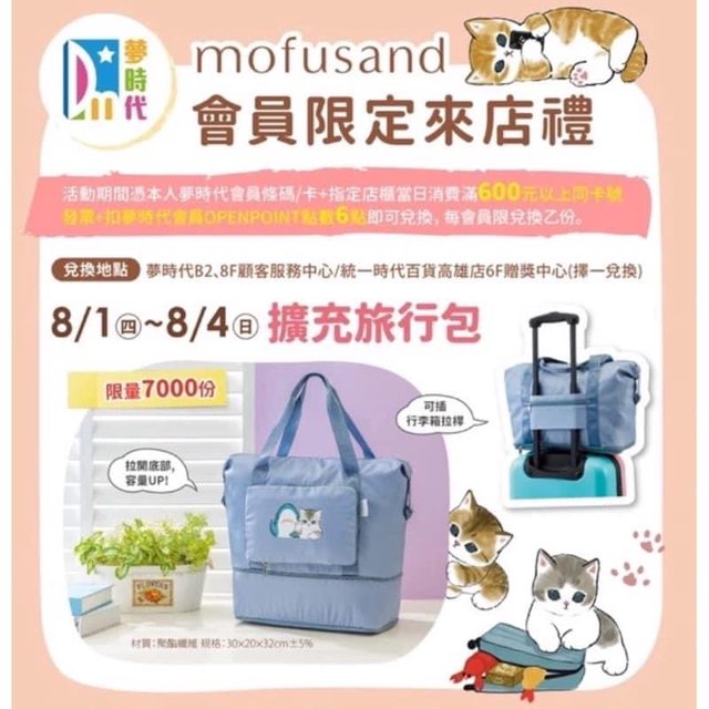 夢時代來店禮貓福珊迪擴充旅行包