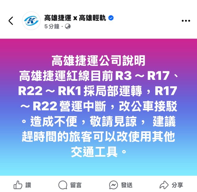 推 smc0911 : 高捷不是不歸市政府管的?應變關市政府什麼事? 09/23 11:51