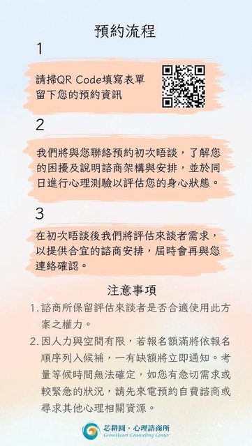 一、 諮商所保留評估來談者是否合適使用此方案之權力。