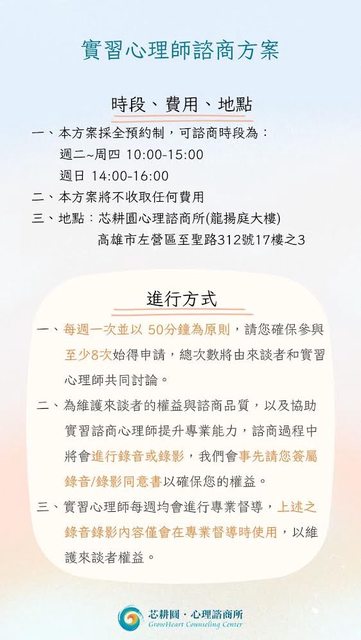 標題[自家] 免費心理諮商-實習諮商心理師諮商服務