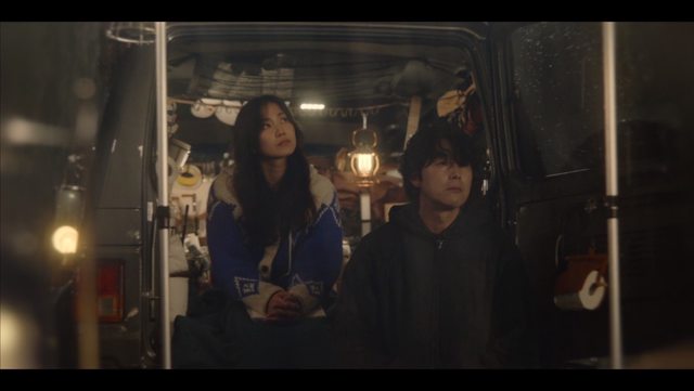遠景就是男主 然後就幫她撿起被吹落的圍巾