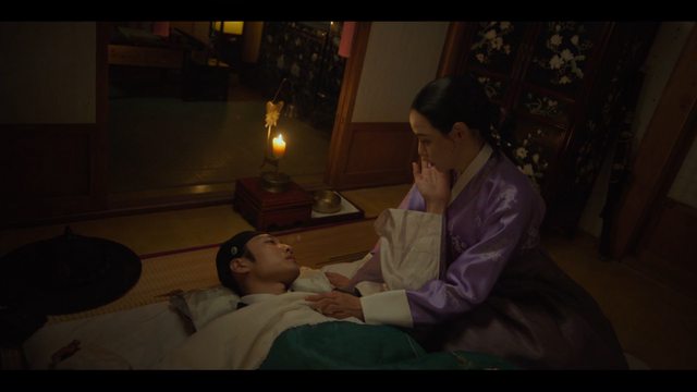 趙與花小心翼翼地推開廂房門,並試圖替朴秀浩蓋好被子。