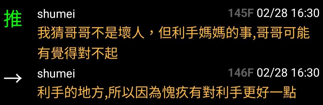 → singerjoan: 爸,利手後來也習慣了做這樣的兒子(哥哥表示:...... 03/24 16:18