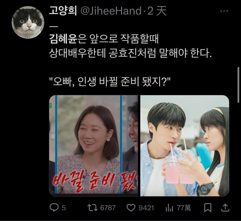 → camryn: 這部能這麼成功,金惠奫功不可沒,從偶然發現的一天後就05/04 23:41