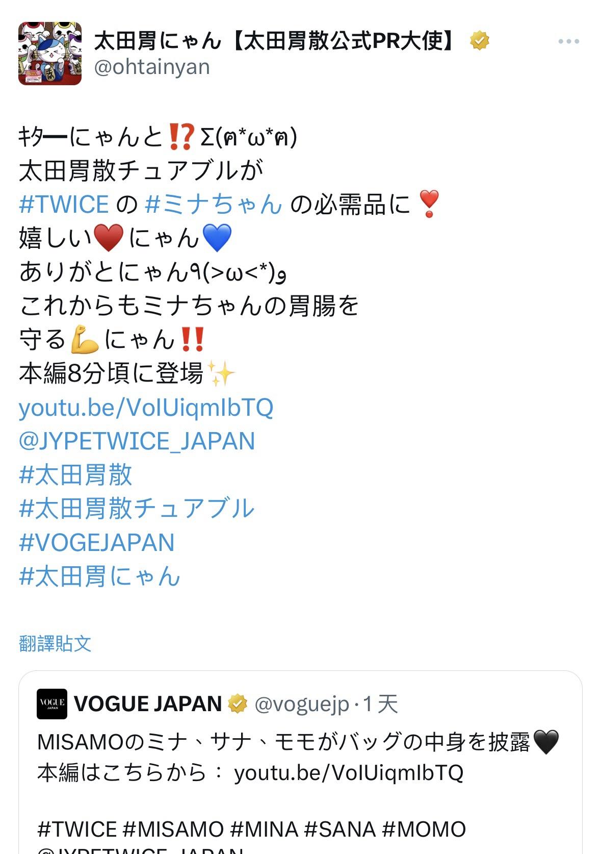 → ctmhsl: 太田 可以找Mina代言了XD 39.9.65.236 10/04 14:12
