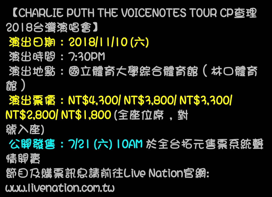 → ChrisDavis: Charlie Puth那個場是世運一半不到 1.162.207.50 11/12 19:33
