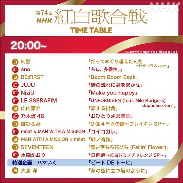 → amethysta: 紅白表演部分不跨年,而且越後面越大111.249.216.105 12/31 18:59