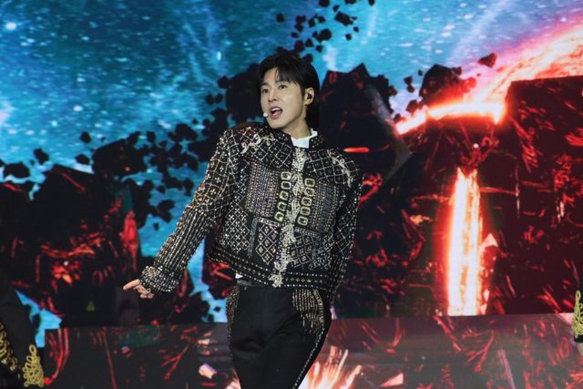 揭開序幕,紅色光芒渲染整場,瑜鹵允浩和最強昌珉從2樓升降舞台霸氣現身,緊接著帶