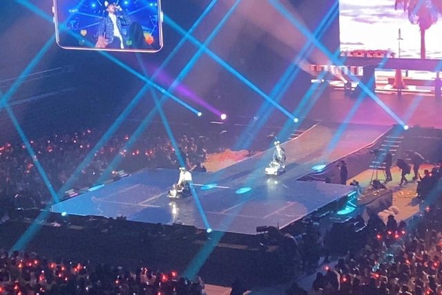 效果華麗,並數度搭著升降舞台,近距離交流位於高樓層的歌迷。