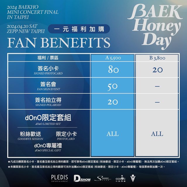 加購資格:2024 年 4 月 8 日 23 點 59 分前購買【2024 BAEKHO MINI CONCERT <BAEKH