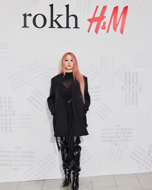 4月12日傍晚在韓國首爾東大門設計廣場(DDP)舉行的H&M x Rokh聯名發布會,CL以粉髮造