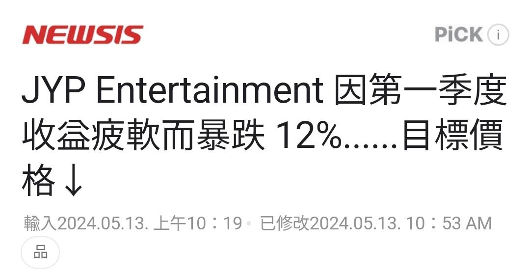 推 felisun: 是投資人嫌JYP第一季獲利不夠XD 122.116.66.105 05/14 00:09
