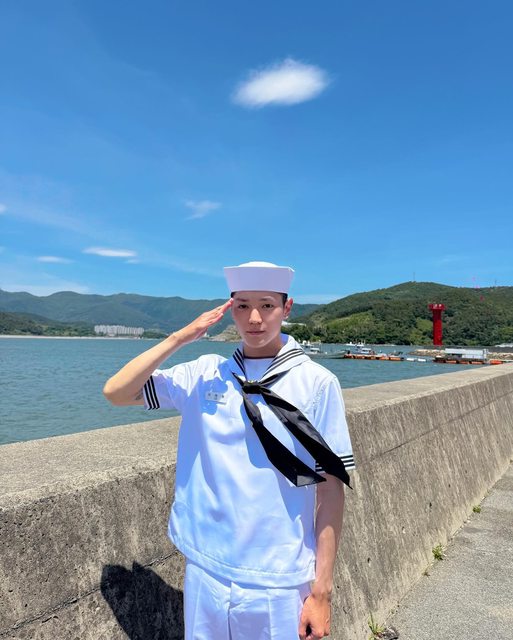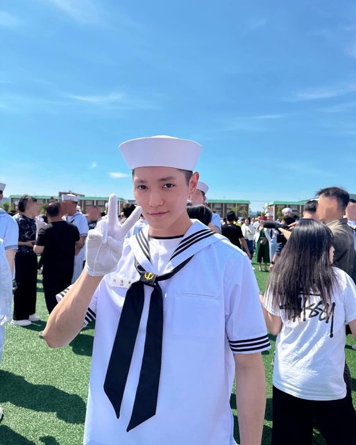 泰容17日在NCT官方IG公開了他身穿海軍水手服、行舉手禮的照片,以及他在結訓典禮發