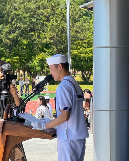 泰容4月15日入伍,結束基礎軍事訓練的他,以海軍現役的身分服兵役,預計於2025年12