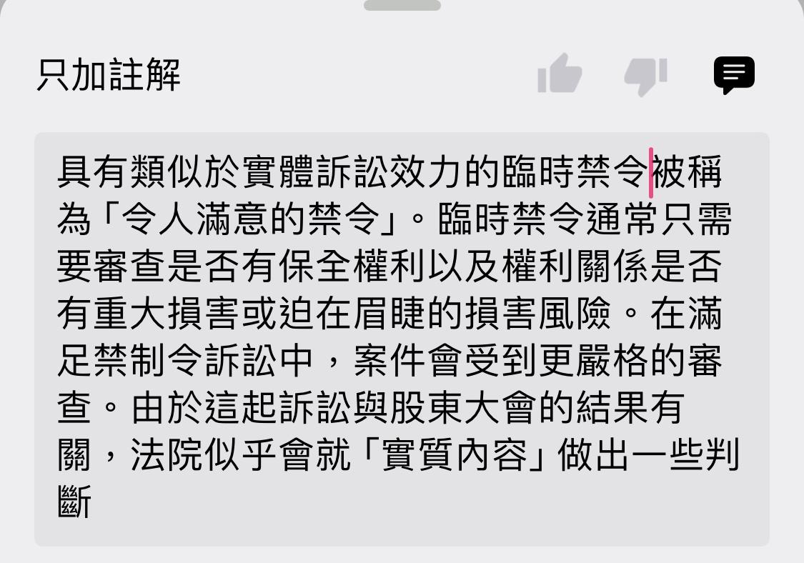 推 stephanie12: 之前有看到律師判斷一般禁令被駁回 1.168.60.180 05/19 19:35