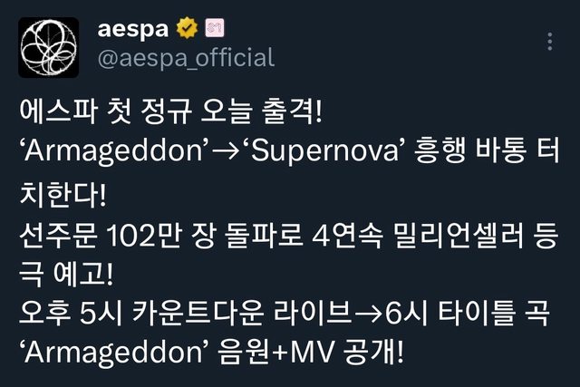 推 t589642tina: 推aespa!!!!! 1.165.14.54 05/27 12:25