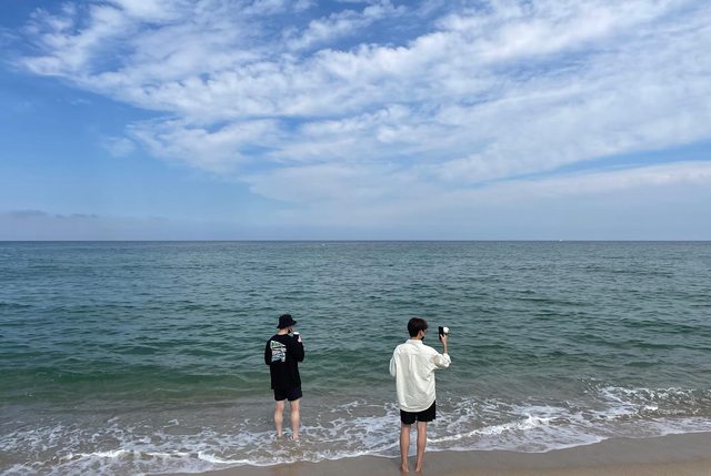 一張照片,是他與文彬一起在海邊拍攝的背影照。此前勝寛也多次撰文表述他對文彬的思