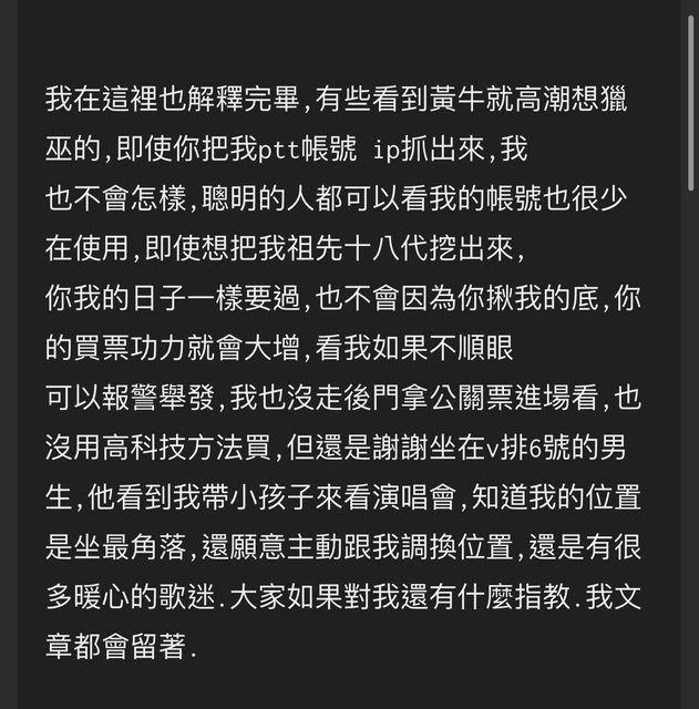 → Vicky1016: 殊不知變成幫黃牛背書聲援……118.232.100.169 07/27 23:46