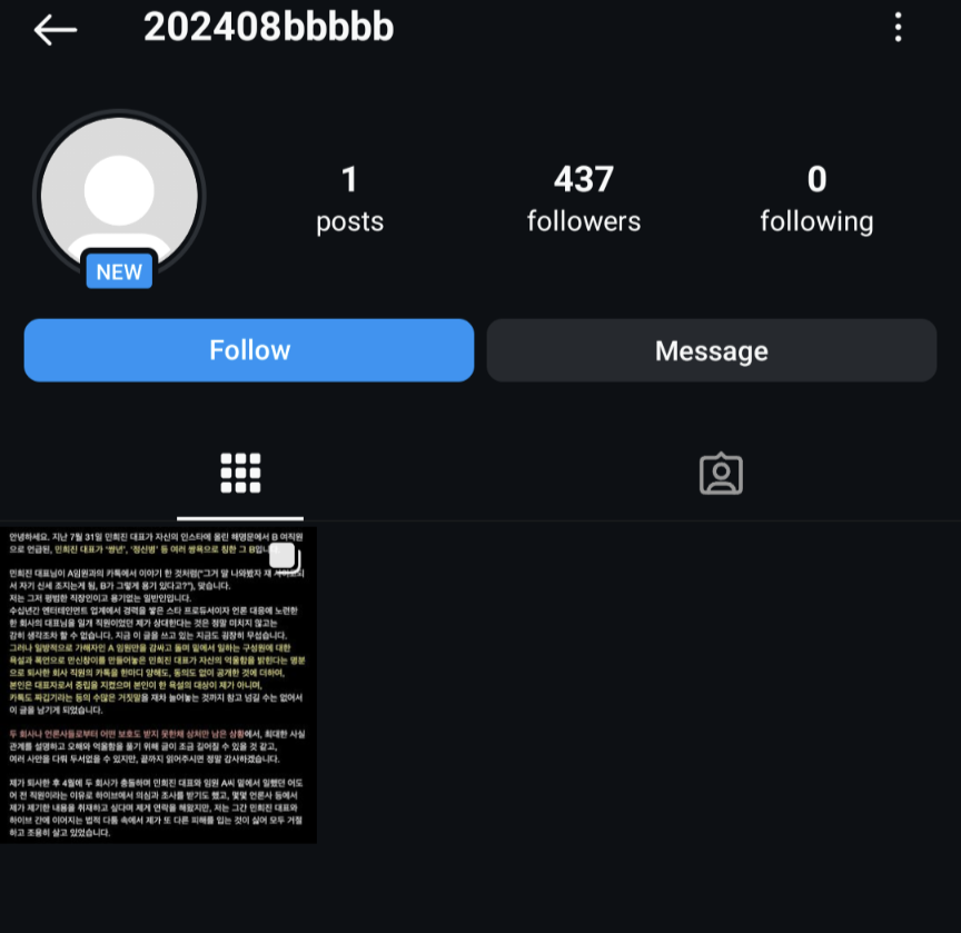 → green290043: 有人提到hybe放的對話只有閔和高層 49.216.19.92 08/09 16:55