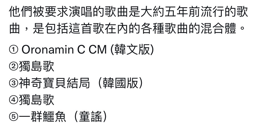 → tieneun: 我的問題是為什麼會聊到一定要唱那首歌的 114.33.224.4 08/31 23:36