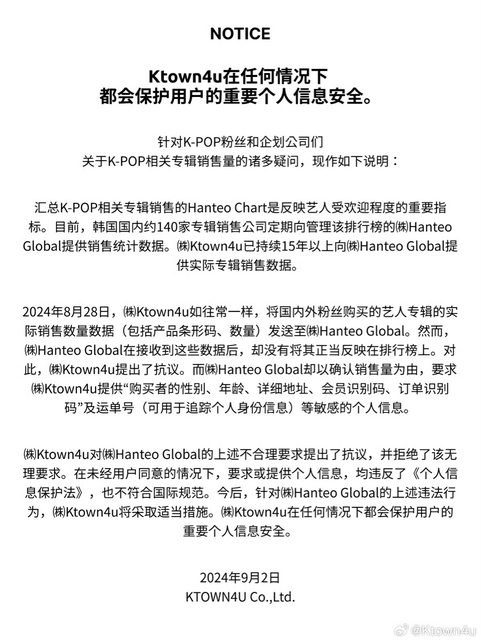 但Ktown4u拒絕了我們的合作請求,發布了單方面的官方公告。綜上所述,Ktown4u目前的