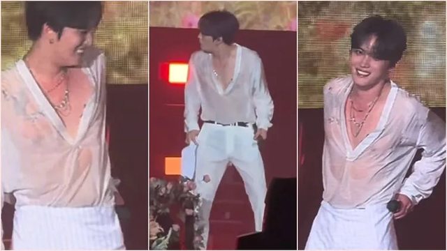 標題[新聞] 金在中穿全白開唱「潑水濕全身」 現場放送透明薄肌連內褲都