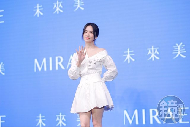 者會,吸引近百名媒體到場採訪。宋慧喬大方露香肩一身白色小洋裝俏麗登場,謙虛地說