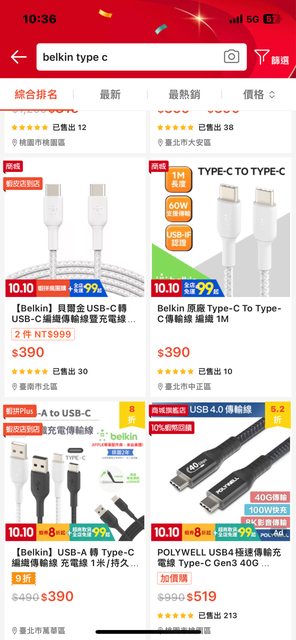 用499-99買了一組兩條2M的Belkin Type-C$691