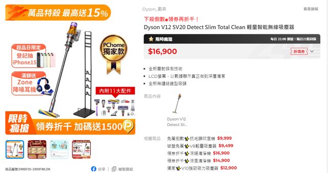 標題[情報] PChome Dyson$15900 百貨週年慶優惠分享
