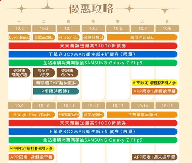 看了一下這次的週年慶檔期,這邊幫大家整理一下有用的活動資訊
