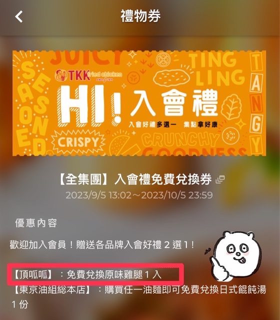→ PeterHu0827: 這應該是入會卷送到帳號 有領到卷220.132.125.211 10/25 11:03